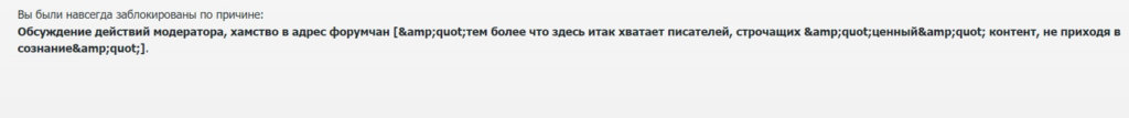Причина бана так и была указана: «хамство  в отношении форума».
