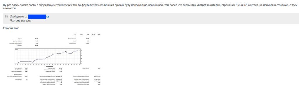 Я была яркой участницей. Писала от души, а не клепала серийные посты в режиме потока сознания, как это принято на форуме. Мои сообщения были в основной массе о трейдинге: о реальных идеях, планах, достижениях и провалах. Они собирали внимание, просмотры, обсуждения, движ. И часто после того, как меня банили, ветки, в которых я была активна, умирали.